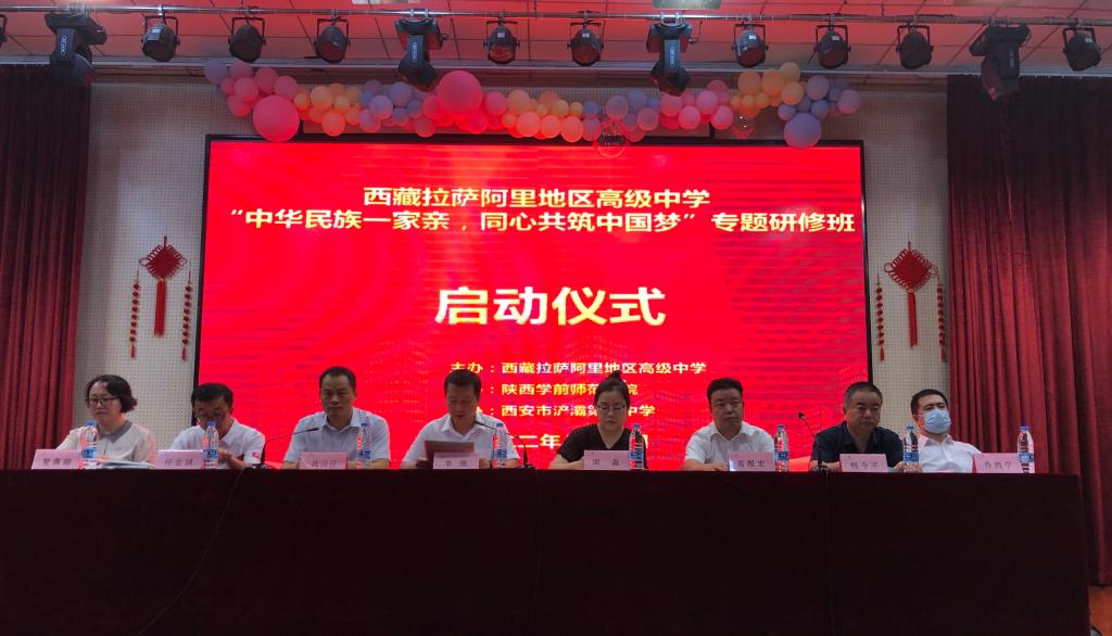 2022-08-078月2日上午,由我校承办的西藏拉萨阿里地区高级中学“中华民族一家亲,同心共筑中国梦”专题研修班在西安市浐灞第一中学开班。副校长李强,陕西省教育厅教师工作处副处长周淼,阿里地区教体局副局长韩润社,西安市浐灞第一中学校长高根宏、副校长乔西宁,拉萨阿里地区高级中学副校长任立斌出席,阿里地区高级中学55名师生及教师培训学院、浐灞一中相关领导、老师参加启动仪式。开班仪式由阿里教体局副局长韩润社主持。李强副校...