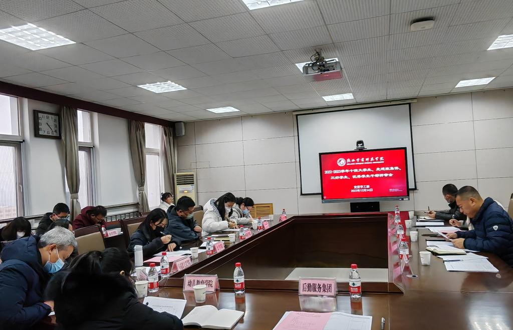为全面落实立德树人根本任务,选树优秀学生典型,发挥榜样示范作用,引领学生德智体美劳全面发展,12月14日下午,我校在德勤楼第四会议室举行了2022-2023学年十佳大学生、先进班集体、三好学生、优秀学生干部评审会。由各二级学院分管学生工作的副书记、教务处、保卫处、后勤服务集团、团委、学工部等相关部门负责人组成评审委员会,会议由学工部副部长王成富主持。会议首先介绍了十佳大学生评选条件、评选程序及评选办法,经过...