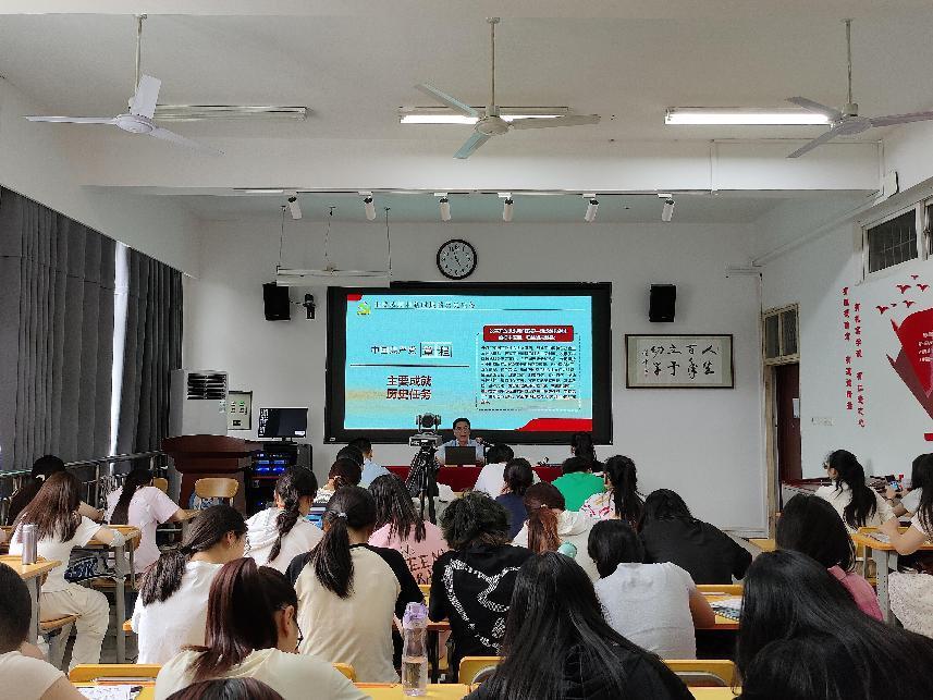 邵书记从党章概述及其发展历程,党章节选,习近平新时代中国特色社会主义思想的主要内容及其世界观方法论,习近平总书记关于教育重要论述的丰富内涵和使命担当,以习近平新时代中国特色社会主义思想为遵循、努力做社会主义事业的建设者和接班人等五方面做了专题辅导报告。邵书记用鲜活的语言、生动的案例、图文并茂地阐述了习近平新时代中国特色社会主义思想的丰富内涵,引导青年学生担负起党和国家赋予我们的历史使命,真正成为社会主义事业的合格建设者和可靠接班人。