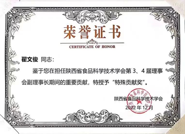 民进会员翟文俊研究员共申报深加工产品国家专利84项,发表学术论文100余篇,出版专著两部三册,即《生物科学与食品加工》《天然食材研发与成果转化》上、下两部,并有开发应用技术成果36项,转化技术成果达16项。先后获得西安市科学技术奖1项,陕西省高等学校科学技术奖9项、安康市人民政府奖1项,临潼区人民政府奖1项,省政府参事室优秀报告建议奖7项,太白县产业发展特别贡献奖1项,并分别获得国家级、省级专业学会、协会奖励8项等。