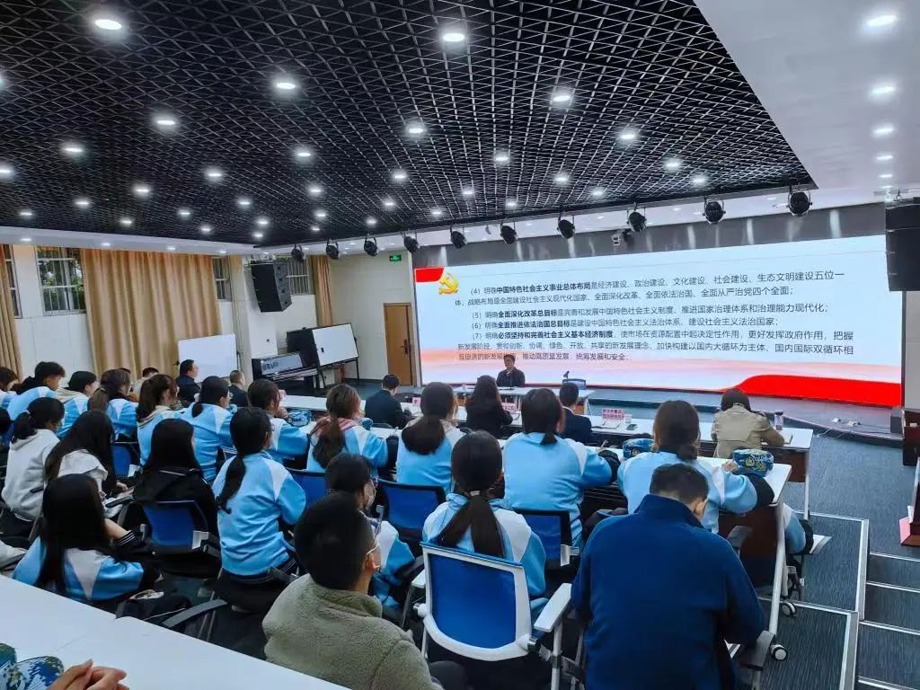 三是广泛开展宣传宣讲。把学习宣传党的十九大、党的二十大精神作为“大思政课”建设的核心内容,成立党的十九大精神宣讲团、党史学习教育宣讲团和党的二十大精神宣讲团,面向全校师生开展多形式、菜单式宣讲,在全校掀起学习的热潮。学校领导班子成员带头到分管联系单位开展《习近平谈治国理政》《习近平著作选读》等主题宣讲,讲授专题党课,引领全校党员干部师生深入学习习近平新时代中国特色社会主义思想,用马克思主义中国化的最新理论成果武装头脑。