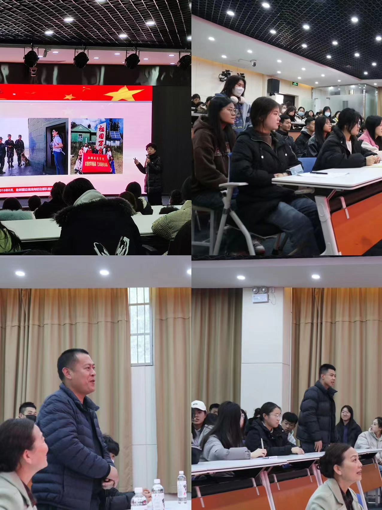 张教授从“重走总书记视察之路、站在哨所上倾情献艺、参观学习当地纪念馆、与边防战士联手表演”四个方面,用生动风趣的语言讲述了边防战士在艰苦及恶劣的环境中保家卫国、无私奉献的爱国主义精神。在现场,她饱含深情的朗诵了一位边防小战士牺牲前写给妈妈的信,在场的所有人无不深受触动,激发了学生的爱国情、报国志。尤其是在讲座中张教授还与我校部分退伍复学的学生亲切交流了在部队的收获与体会。张教授也对在座的学生提出了殷切期望,希望大家继续发扬人民军队的光荣传统,传承红色文化,厚植爱国情怀。坚持学业为本,立大志,明大德,成大才,担大任。