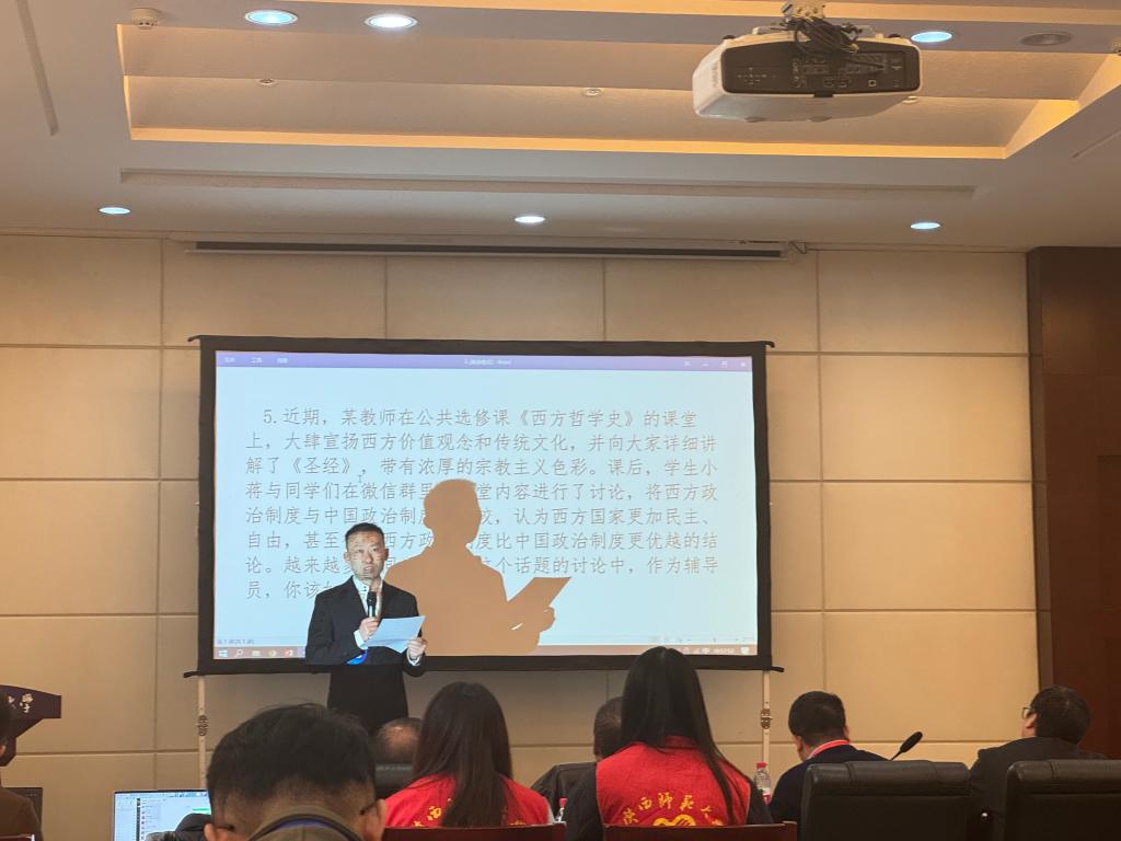 由中共陕西省委教育工委、陕西省教育厅主办,陕西师范大学承办的2023年陕西高校辅导员素质能力提升训练营于2023年11月19日至21日在陕西师范大学长安校区举行。我校选派第六届辅导员素质能力大赛一等奖获得者历史文化与旅游学院专职辅导员任柏阳参加本次训练营,经过激烈角逐,最终荣获“优秀风采奖”。党委学工部部长薛晓娟、副部长王成富和辅导员代表现场观摩学习,同时组织全体辅导员线上观看了训练营的交流分享和总结颁奖环节。