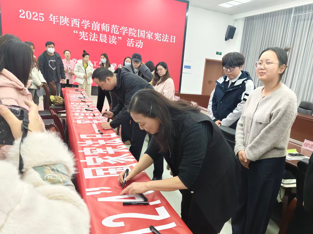 随后,学校组织开展“弘扬宪法精神,争做守法公民”主题签名活动,与会师生共同在横幅上郑重签下自己的名字,以实际行动彰显对宪法的尊崇与维护。大家一致表示,将以签署活动为契机,切实将宪法精神转化为自觉行动,从遵守校纪校规入手,使尊法学法守法用法成为行为准则。