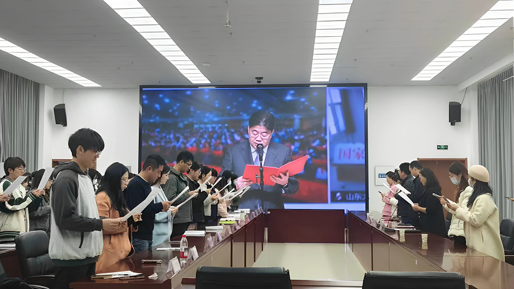 2025年12月4日是第12个国家宪法日,辅导员代表、学生代表和党委学工部、团委工作人员共计100余人通过普法网直播平台,参加了教育部组织的2025年国家宪法日教育系统“宪法晨读”活动。校党委副书记夏炎出席活动并讲话。