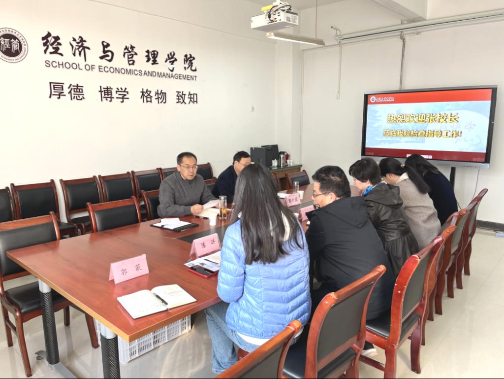 2023年11月7日下午,校长张健到经济与管理学院就学院发展及各项工作开展调研指导,学校党政办公室负责人陪同,经济与管理学院全体班子成员参与调研座谈。