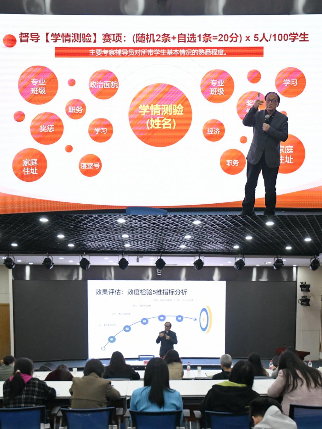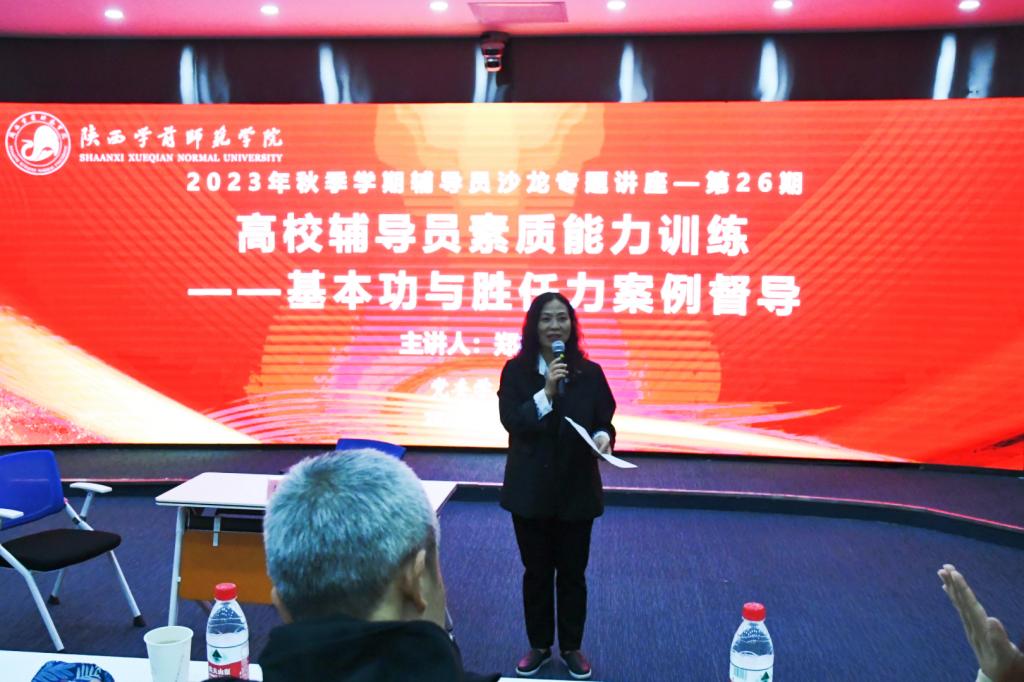 2023年11月3日上午9:00,学工部特别邀请陕西省师德标兵、陕西省高校心理素质教育研究会会长,中国心理学会CPS注册心理督导师,教育部全国第8-9届高校辅导员大赛专家评委郑林科教授在二教楼A1为全校专兼职辅导员做了题为“高校辅导员素质能力提升:基本功与胜任力案例督导”的专题讲座。各二级学院党委副书记、全体专兼职辅导员以及学工部全体工作人员参加了本次讲座,讲座由学工部部长薛晓娟主持。