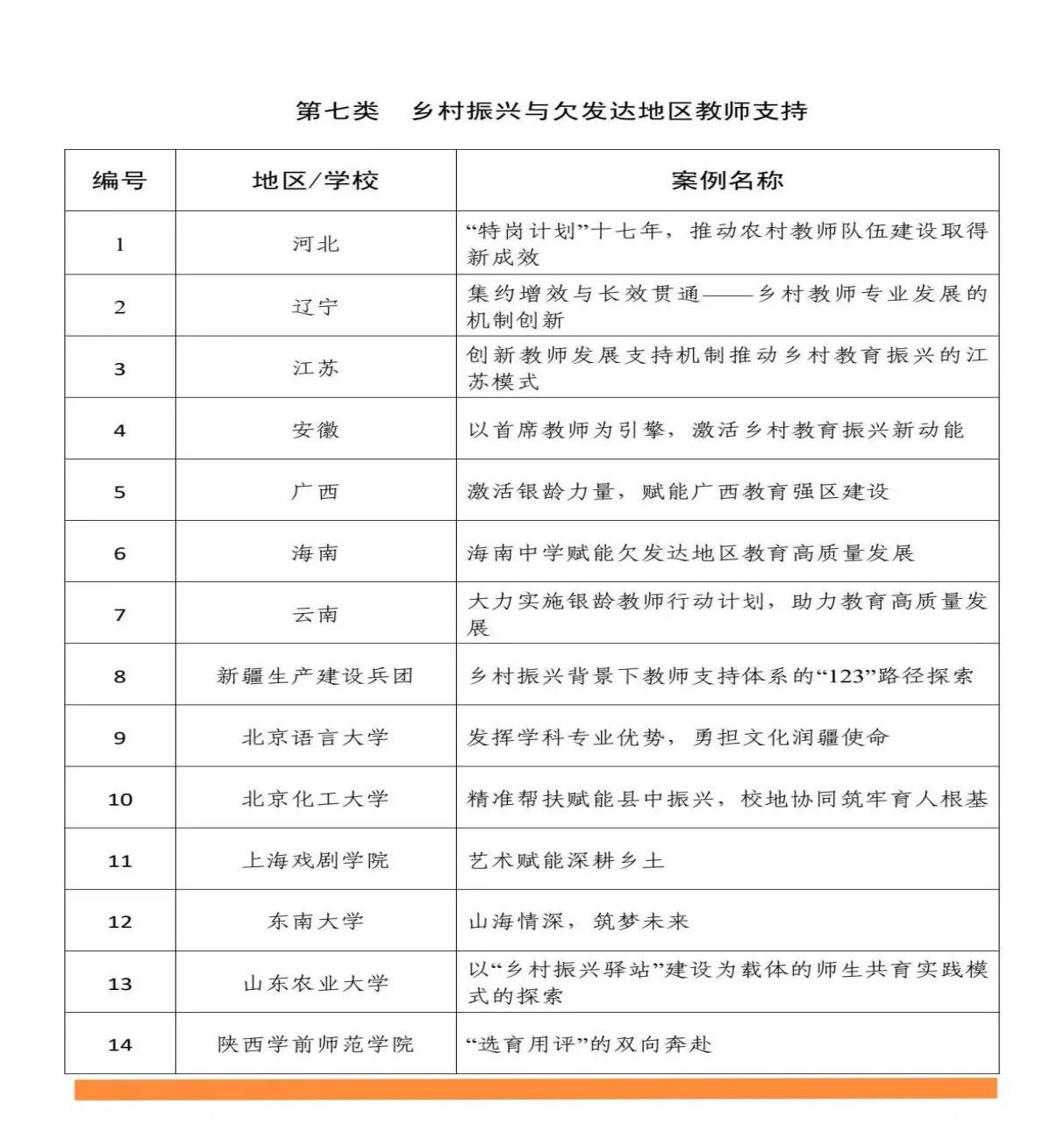 据悉,本次入选案例系统收录了全国各地教育行政部门及高校在教师队伍建设中的典型经验与创新实践,分九大类共149项,涵盖教育家精神引领下的教师成长内生动力激发、师德师风建设、教师培养培训模式、教师管理评价改革、教师待遇保障、数字赋能教师专业发展、乡村振兴与欠发达地区教师支持等关键领域。