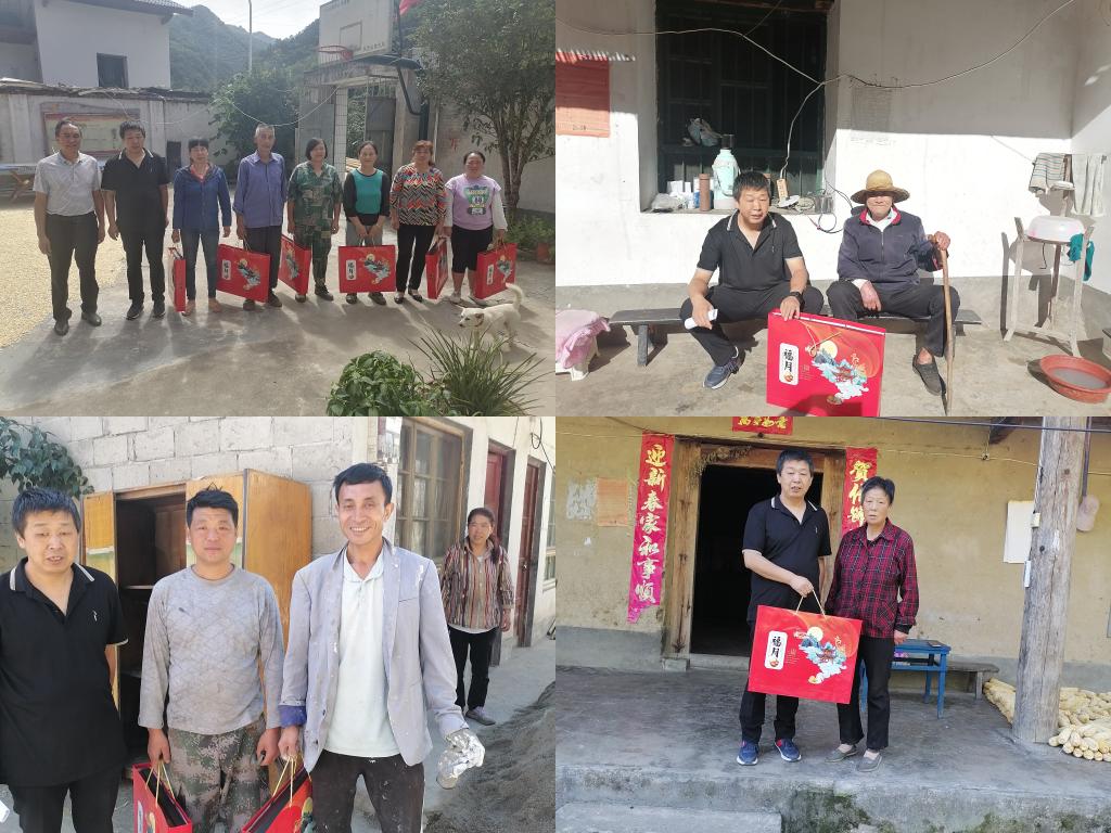 月到中秋分外明,人到佳节别样亲。在中秋佳节来临之际,为了让帮扶村群众过上一个欢乐、祥和的节日,我校驻村干部于9月9日按照学校党政领导的指示,前往帮扶村留坝县元树村开展中秋慰问活动,为68户老党员、脱贫户、村干部送去中秋慰问月饼和节日的问候。