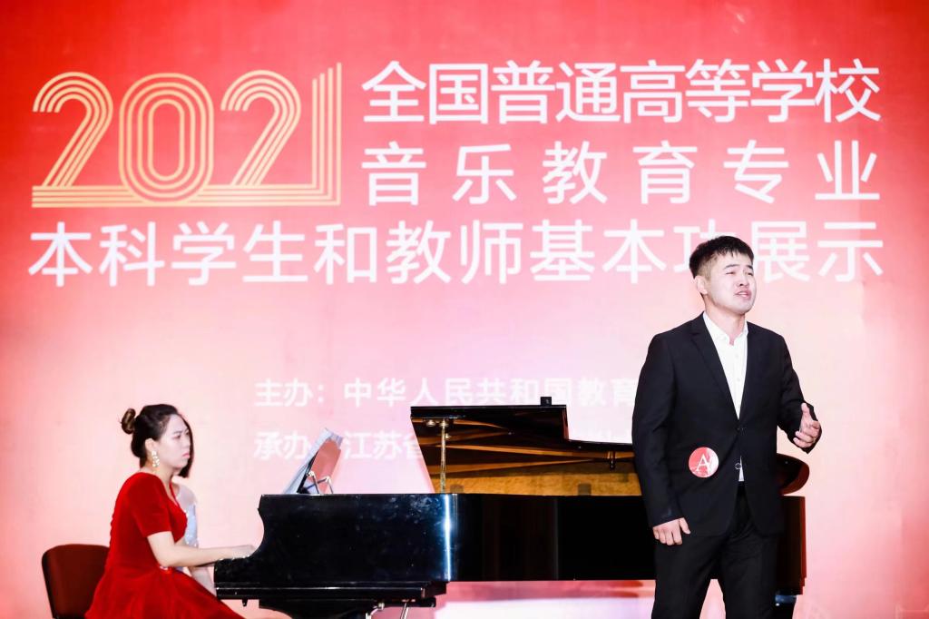 全国普通高等学校音乐教育专业本科学生基本功展示活动是目前全国普通高校音乐教育专业最高级别的展示活动,每两年举办一次,活动采用随机抽选参赛队员的方式,我校学生团队中的马浩由音乐学院选定,毕杰、王莹由教育厅从音乐学院2018级全体学生中随机抽取。每名学生需完成四项基本功展示,分别是:微课教学、歌唱与钢琴伴奏、自弹自唱和个人才艺展示(指定内容:第二乐器、舞蹈、合唱指挥)。成绩评定为个人全能、个人单项奖及团体奖。三位选手在各个项目上均充分展示了实力,赛出了风格和水平,为我校取得了优异成绩。