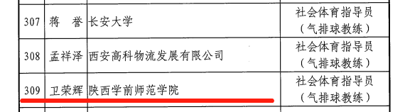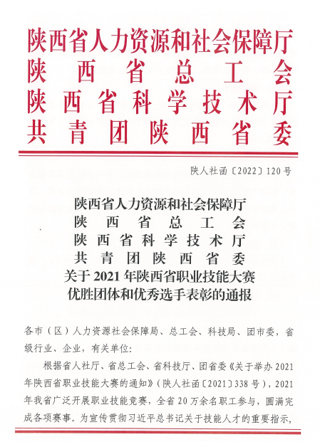 2022年4月19日,陕西省人力资源和社会保障厅、陕西省总工会、陕西省科学技术厅、和共青团陕西省委联合印发《关于2021年陕西省职业技能大赛优胜团体和优秀选手表彰的通报》(陕人社函[2022]120号),我校体育学院卫荣辉教授被授予“陕西省技术能手”称号。