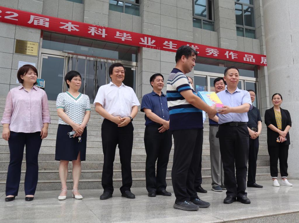 在纪念毛泽东同志《在延安文艺座谈会上的讲话》发表80周年之际,为进一步推动我校美育向纵深发展,营造浓厚的校园艺术氛围,提升学生审美素养,5月22日上午,由美术学院和图书馆联合举办的“美术学院2022届本科毕业生优秀作品展”在我校图书馆开幕。校长邵必林,校党委副书记、纪委书记、省监委驻校监察专员王凯,校党委副书记栾高明出席开幕式,党政办公室、党委组织部、党委宣传部、党委学工部、人事处、图书馆等部门主要负责人,以及美术学院师生参加开幕式。