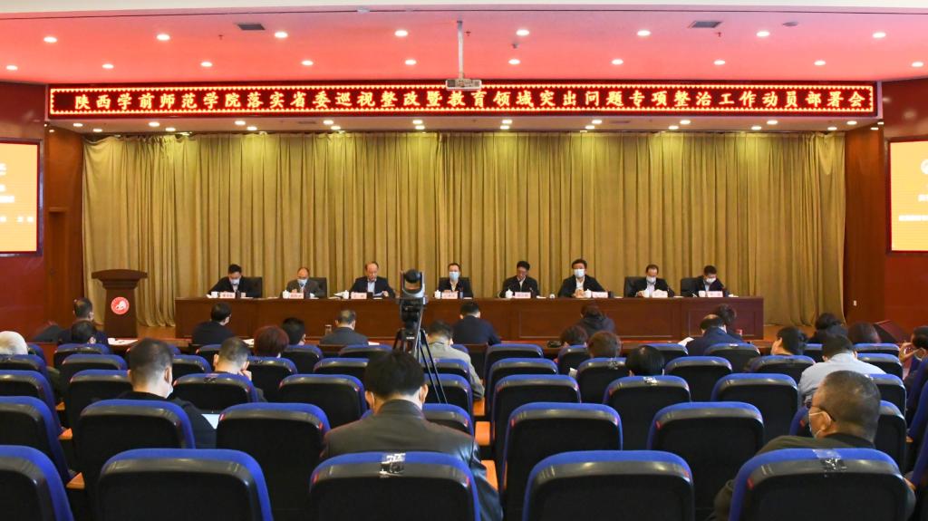 为进一步强化思想认识,明确整改任务,压实整改责任,加快推进巡视整改暨教育领域突出问题专项整治工作,4月13日上午,学校召开了落实省委巡视整改暨教育领域突出问题专项整治工作动员部署会。学校党委领导班子成员、各单位党政主要负责同志、学术带头人代表、教师和学生代表参加会议。会议由党委副书记、校长邵必林主持。会议以主会场及分会场视频直播形式同步进行。