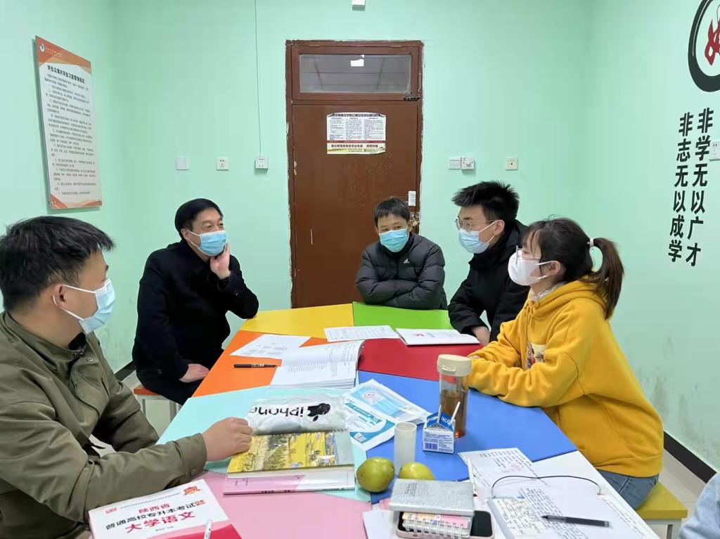 新学期第2周,面对全国本土聚集性疫情点多、面广、频发的严峻形势,我校响应陕西省教育厅的疫情防控指示,第一时间对学校进行封闭管理,并再次启动学生公寓临时党支部机制,即时做好了疫情防控常态运行向“战时状态”的转变工作。在学校封闭管理期间,为深入了解我校安全保障工作的开展情况和在校师生的学习、工作和生活状况,我校全体校领导率先入住学校。在此期间,校党委书记付建成、校长邵必林、党委副书记栾高明多次走访临时党支部和共享自习室。每次走访,各位领导都会详细听取相关负责人就临时党支部运行的基本情况、已经开展或准备开展的各项工作等进行的汇报,并与临时党支部的值班学生和共享自习室的自习学生进行亲切交谈。