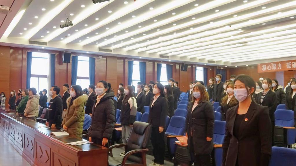 典礼在庄严肃穆的国歌声中拉开帷幕。活动中,校团委书记李蓉宣读了《关于表彰第五期“青年马克思主义者培养工程”培训班优秀学员的决定》,同时对第五期培训班相关工作进行了简要总结,鼓励师院青年要始终牢记历史使命,成长为优秀的青年马克思主义者。校团委副书记徐思丹宣读了《陕西学前师范学院“青马工程”第六期大学生骨干班培养工作实施方案》并对培训工作部署做了简要说明。文学院刘册同学作为第五期“青马班”优秀学员代表,分享了个人在一年培训期间所取得的丰硕成果,字里行间饱含深情,充分展现了青马学员昂扬向上的良好风貌。幼儿教育学院苏予彤同学作为第六期培训班学员代表表示将珍惜培训机会,严格遵守“青马班”的规章制度,进一步提升理论修养,积极发挥大学生骨干先锋作用。