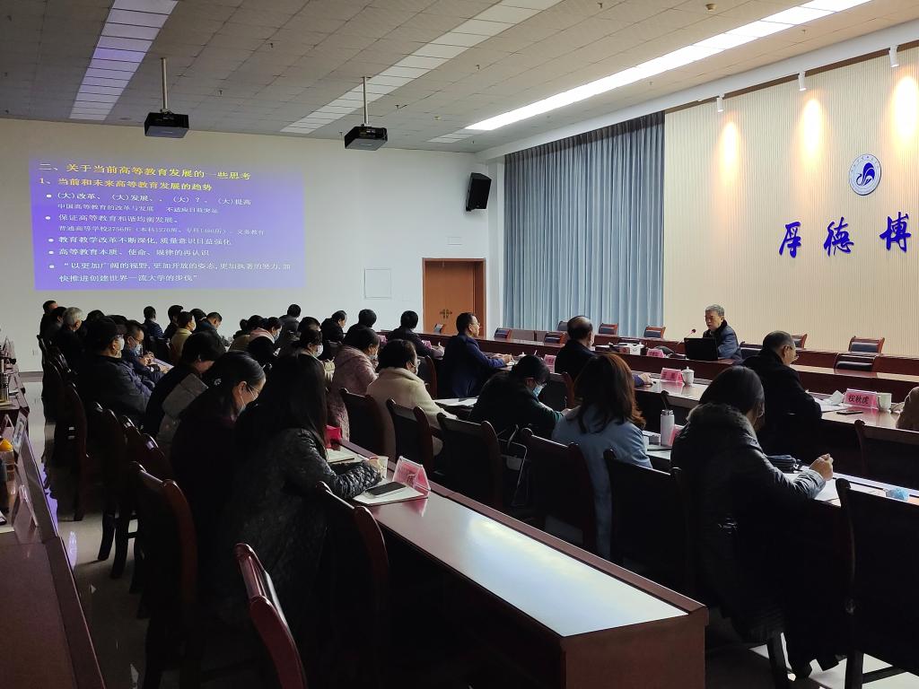11月9日下午,西安交通大学原副校长于德弘教授受邀为我校做了题为“突出特色 抓住机遇 继往开来 争创一流”的专题讲座,学校党委书记付建成主持会议,全体校领导及党政群管理部门负责同志、各二级学院负责同志、教授代表、教研室主任代表等参加了专题讲座。
