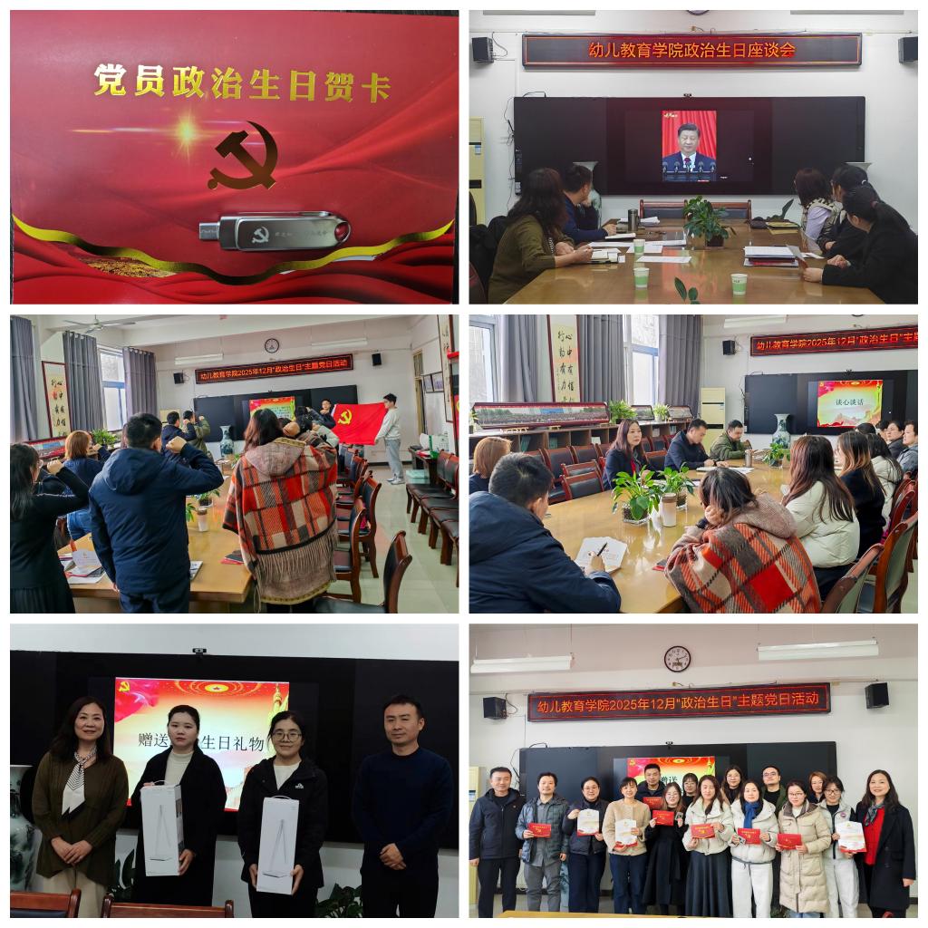 通过“重温一次入党宣誓、谈一次入党初心与使命、观一次党员教育片、送一张生日贺卡、赠一个生日礼物、留一张合影”的“六个一”党日活动方式,以组织温暖厚植育人情怀,让每一位党员在初心回望中凝聚奋进力量,2025年,全年共计召开集体“政治生日”主题党日活动8次,幼儿教育学院党委始终坚持按月为教师党员集体过“政治生日”,并将这一品牌活动作为加强党员教育管理、强化党员身份意识、增强党组织凝聚力和向心力的重要抓手。通过规范化的流程、人性化的设计、内涵丰富的环节,将严肃的党性教育与温暖的人文关怀有机结合,使之成为党员政治生活中的“加油站”、思想交流的“互动台”、砥砺初心的“检视镜”,有效激发了党员队伍的内生动力和组织活力。