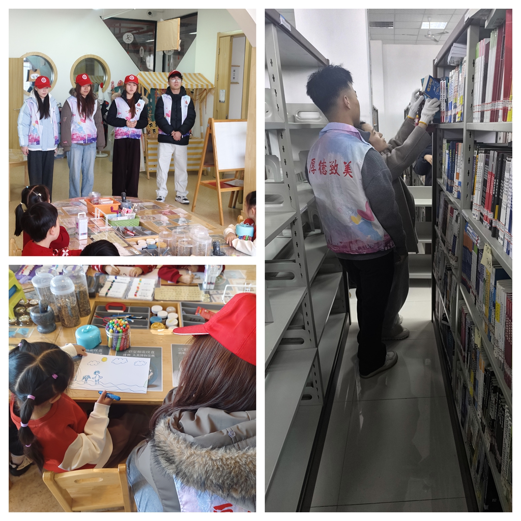 3月5日,美术学院组织学生党团员走进学校附属幼儿园和图书馆,开展主题志愿服务活动,用实际行动弘扬奉献精神,传递青春正能量。