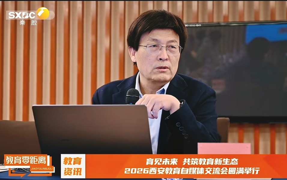 4月1日,我校区域教育发展研究院院长、老教授协会会长王越群教授受邀出席陕西广播电视台《教育零距离》栏目主办的“育见未来 共筑教育新生态”2026西安教育自媒体经验交流分享会,围绕“新时代国家基础教育的变革与发展方向”作主题分享。